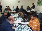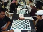 Here’s a quick report. One of the surprising favorites lost in Round 3. Bader Al Hajeri lost to Dennis Poliquit in a long battle that lasted 42 moves. After Dennis made his 42nd move, Bader was forced to resign. He was down too much material to continue.  Here is part of the game: 1. e4 e5 2. Nf3 Nc6 3. Bb5 a6 4. Ba4 Nf6 5. 0-0 Nxe4 6. d4 b5 7. Bb3 d5 8. dxe Be6 9. Nbd2 Nc5 10. c3 Nd3 11. Qe2 Nc1 12. Rac1 Na4 13. Bc2 c5 14. a4 Qd7 15. Ng5 c4 16. f4 g6 17. f5 gxf 18. Bf5 Bf5 19. … SCORE SHEET UNCLEAR…