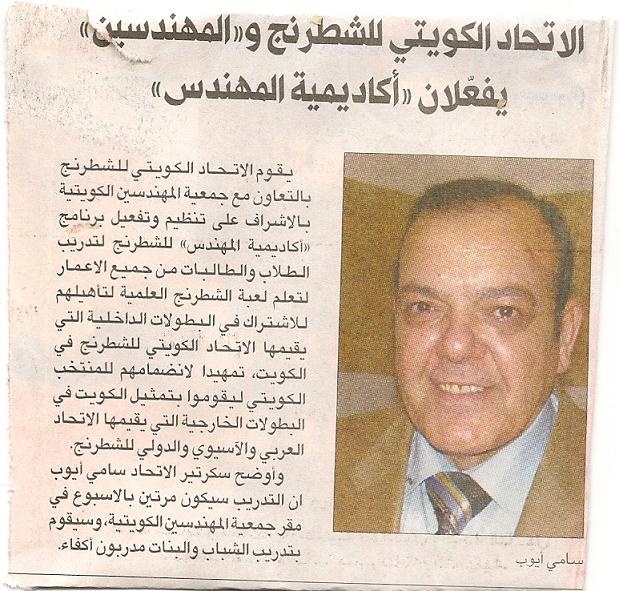 Picture #1: In the picture we see the secretary of the Kuwait Chess Federation, Mr Sami Ayoub, and it discusses the ChessAcadamy. Here is the translation: